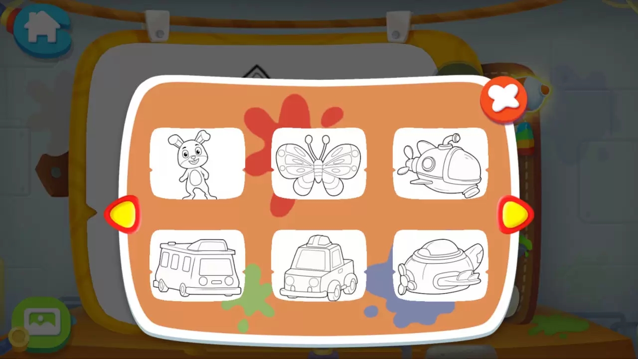 丰富线稿:游戏中有大量酷炫的图案可供选择,如飞机、喷水的鲸鱼等,让孩子们随心挑选。
